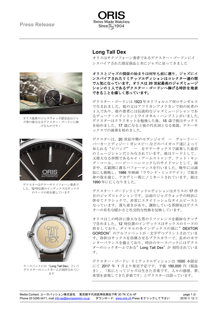 Jp Pr Oris Dexter Gordon Limited Edition
